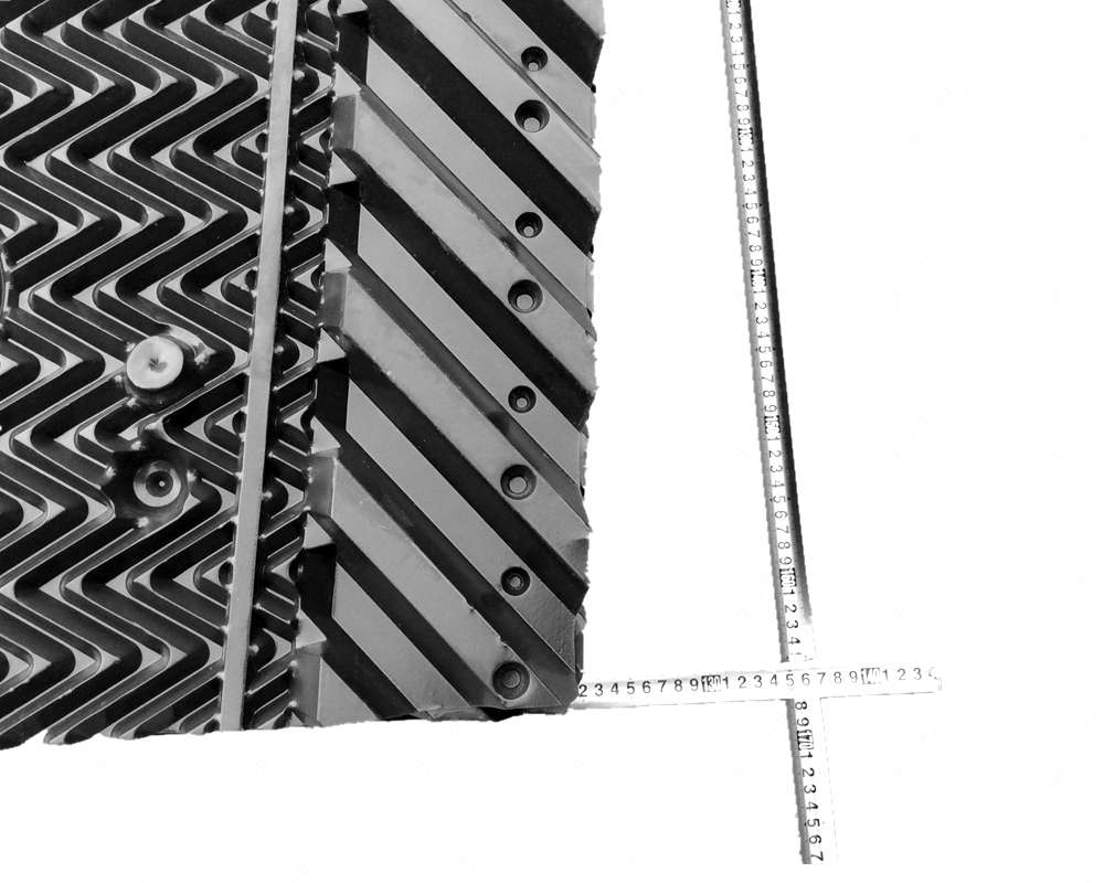 冷卻塔塔芯填料是由優(yōu)質(zhì)PVC聚乙烯片正負(fù)壓及吸塑而成,主要采用了水紋波形、梯形波、點波形、S波型、人字波形填料,散熱面積增長系數(shù)大,水流在板面上分布性能好,水和空氣流經(jīng)板面時擾動大等優(yōu)點。填料不易變形,耐高溫,抗老化,且阻燃性能好,風(fēng)阻系數(shù)小。安裝方便,易清洗,運(yùn)輸方便該散熱填料采用粘接式及懸掛式,安裝簡便,便于清洗,且成功解決了粘接填料因吸積垢、自重而產(chǎn)生變形,且變形后積垢更加嚴(yán)重、難于清洗的問題。填料阻燃性能好,阻燃氧指數(shù)指標(biāo)為42.7,每立方米組裝體質(zhì)量約為15 kg—30kg/m3,組裝高度為0.5m—3.0m,交錯布置,對于塔壁周邊異形塊可視現(xiàn)場布置情況,按實際尺寸切割、安裝。